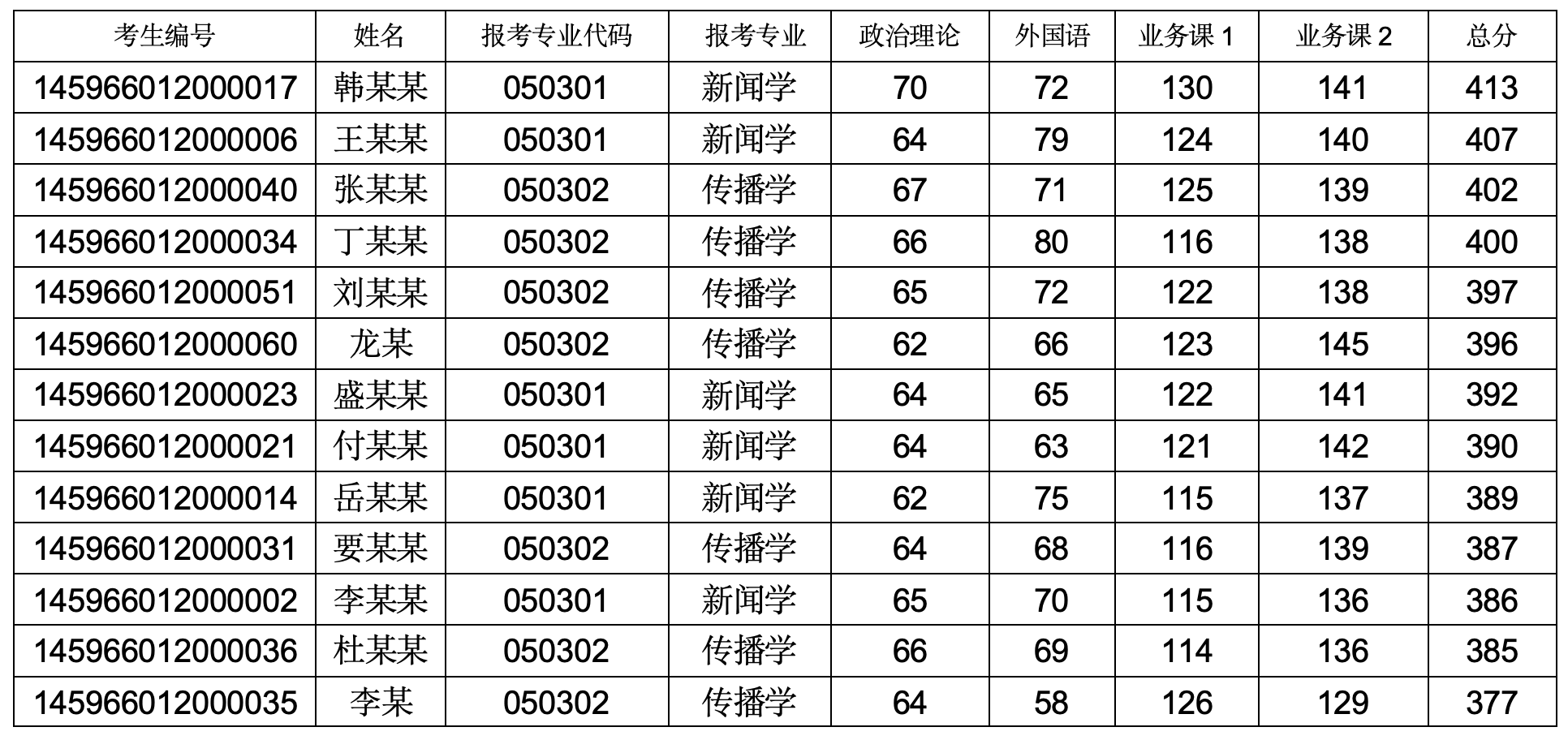 附:复试考生名单